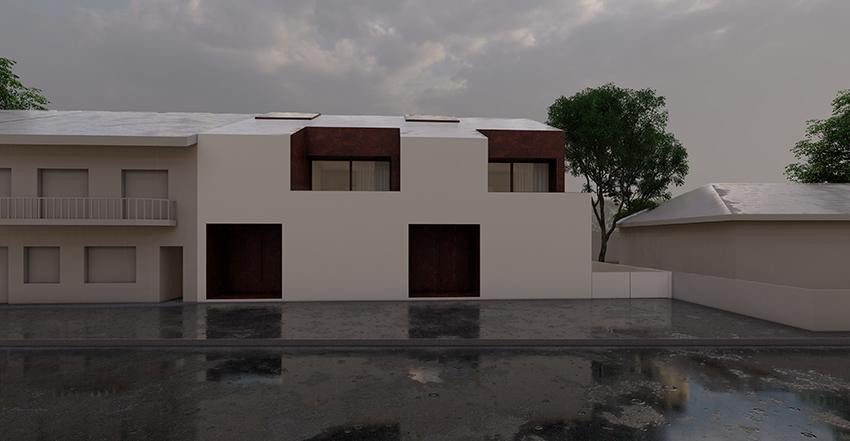 A Habitação bifamiliar, embora composta por duas frações autónomas, é constituída e construído num corpo único que engloba a totalidade do programa. Entendeu-se vantajoso, enquanto imagem urbana, um desenho integrador das duas unidades, promovendo uma leitura de um objeto de maior dimensão, de forte plasticidade e com um compromisso urbano de integração e valor acrescentado na envolvente.