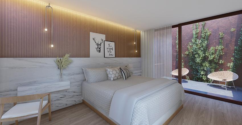 Embora se revele um objeto dotado de contemporaneidade, houve o cuidado de se adaptar às construções envolventes, nomeadamente a poente, com o simples objetivo de ocultar a empena existente, que se apresenta com um forte impacto na paisagem urbana. Daqui resultou uma volumetria mimética, de cobertura também constituída por dois planos inclinados, cuja estética mais arrojada, é obtida pela “abstratização” volumétrica, usando uma sucessão de cheios e vazios, que constituirão os espaços do programa habitacional.